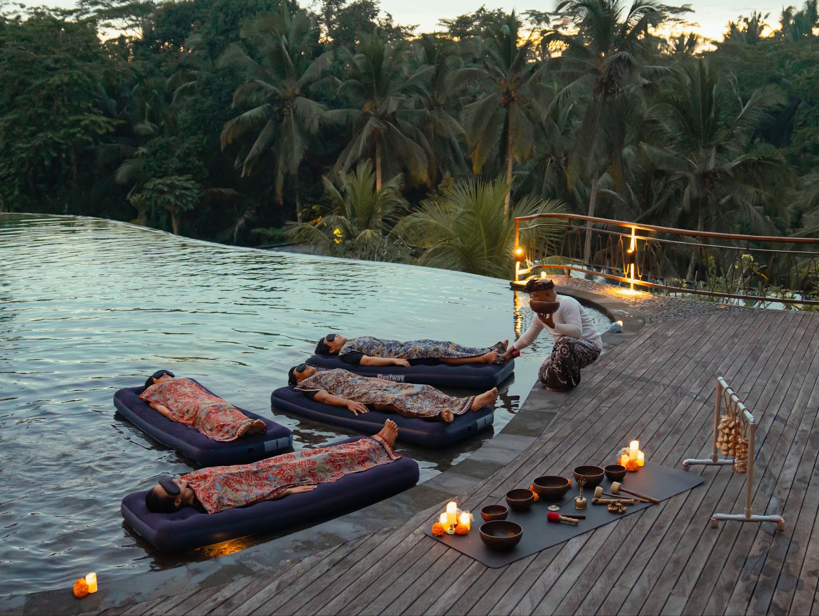 Whether you are staying in a cliffside villa in Uluwatu, a lush jungle retreat in Ubud, or a beachfront suite in Seminyak, our Mobile floating Sound healing Bali team comes to you. We pride ourselves on creating natural settings for healing, utilizing the natural beauty of your own accommodation.